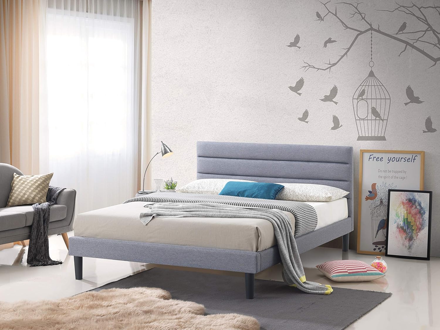Luxeo Brisbane Gray Fabric King Size Upholstered Panel Platform Bed Lue K8134 Gry The Home Depot