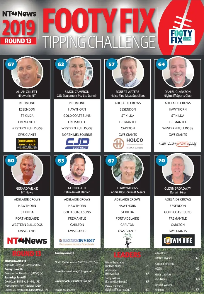 Afl Tipping 2019 The Advertiser Expert Tipsters For Round Daily Telegraph