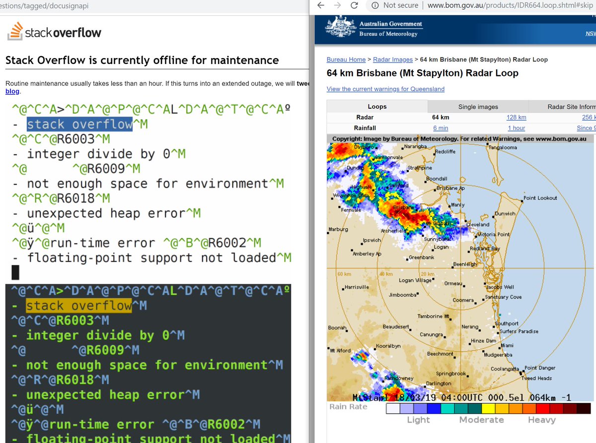 Joseph Cooney On Twitter In One Tab I See Stackoverflow Is Down For Maintenance In The Other Tab I See A Weather Radar With A Storm That Is Not Messing Around This
