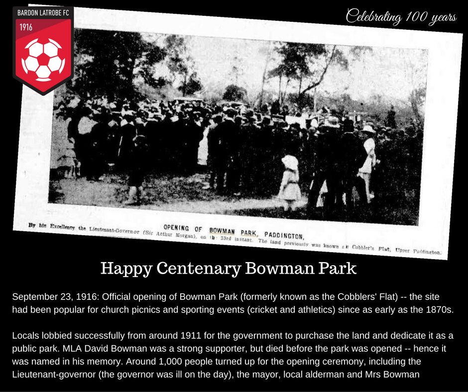 Bardon Latrobe On Twitter It S A Dual Centenary For Blfc This Year And Today Marks 100 Years Since The Official Opening Of Bowman Park Blfc100 Https T Co Ourq3qx5wt